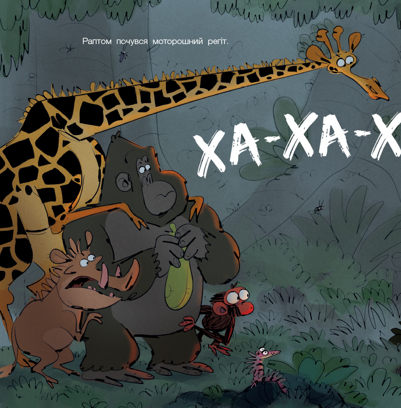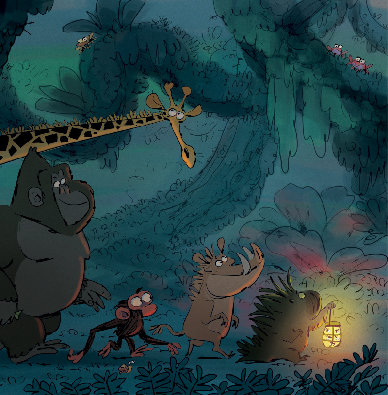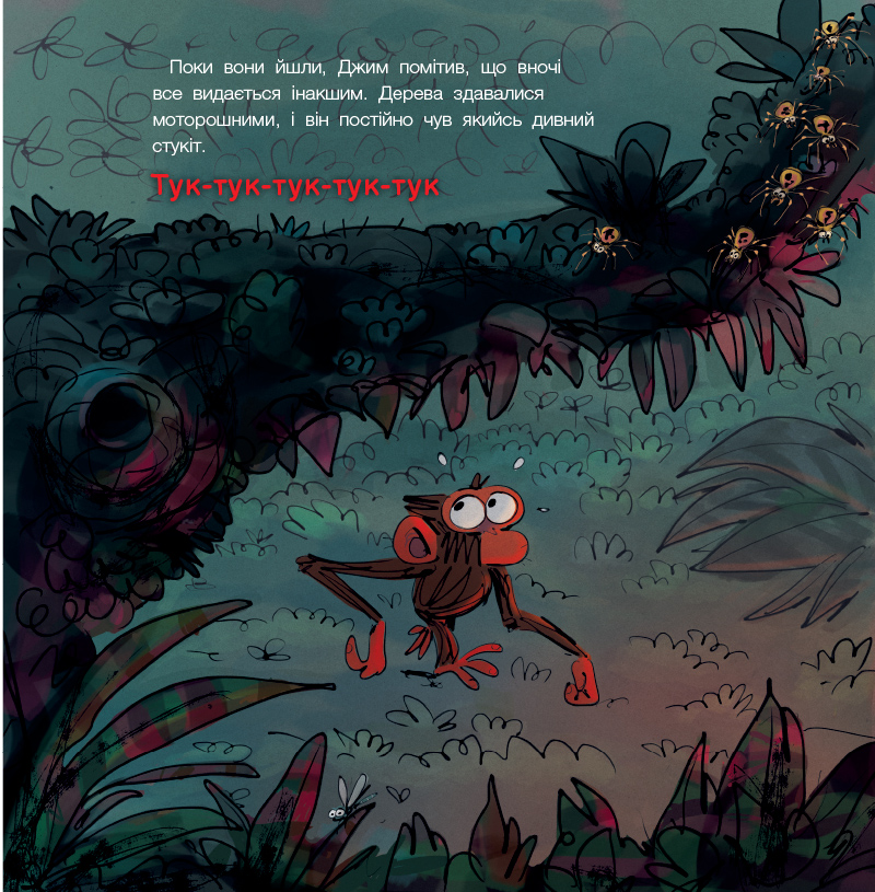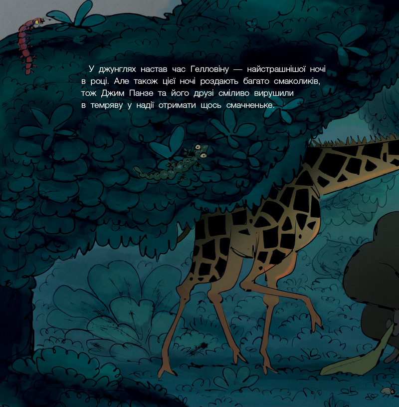 У наймоторошнішу ніч року Джим Панзі разом із друзями вирушає на пошуки ласощів. Але джунглі в темряві — зовсім не такі, як удень: дивні звуки, несподівані запахи, кроки поруч і навіть сяючі очі над головою! Чи зможе Похмуре мавпеня перебороти свій страх і завершити свою нічну пригоду?