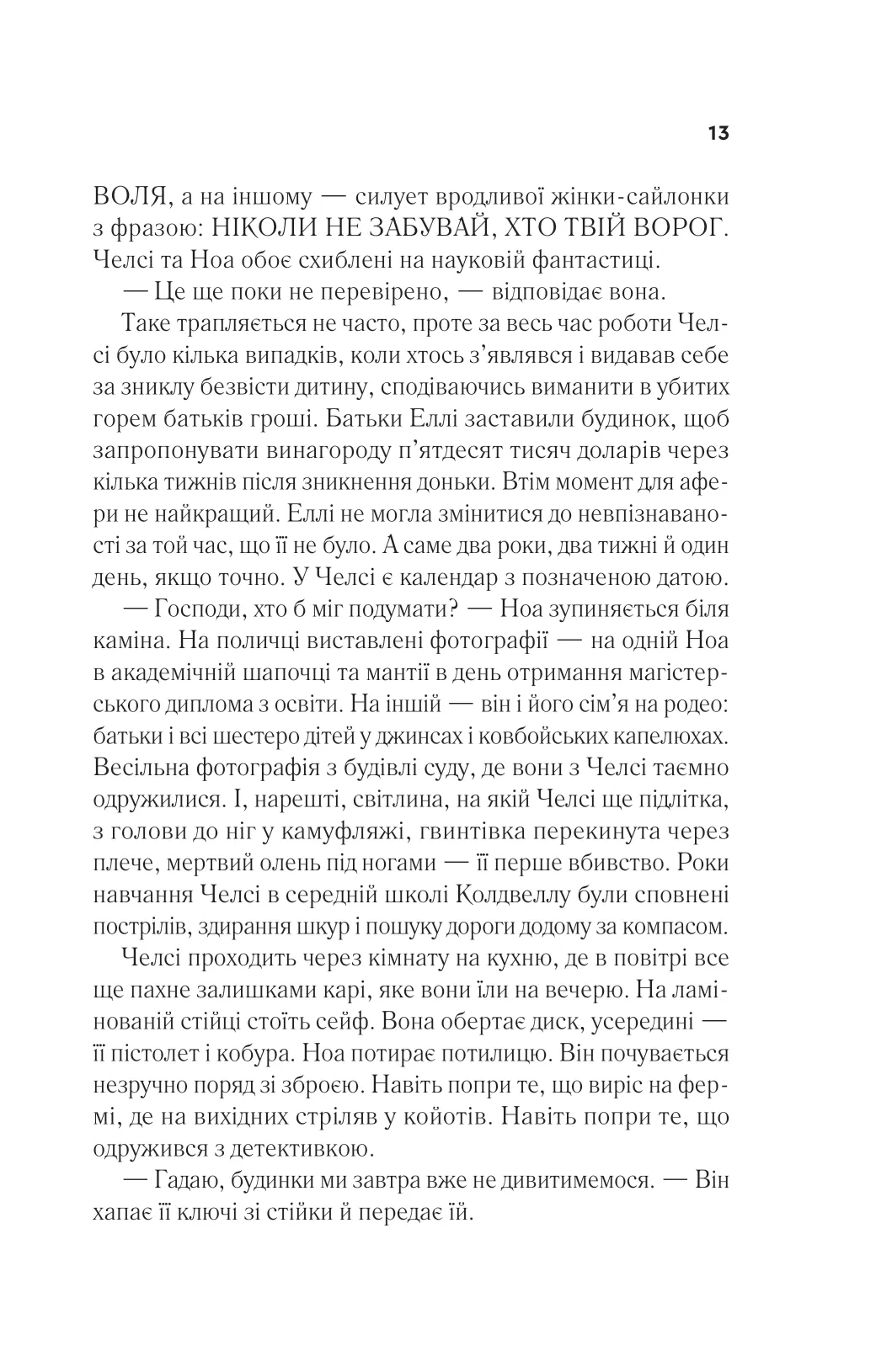 Еллі Блек зникла кілька років тому. І от її знайшли живою в лісі в штаті Вашингтон. Здається, з дівчиною все гаразд, але вона не розповідає, де була й що сталося. Її повернення перевертає догори дриґом життя детективки Челсі Калгун. Її сестра-підлітка зникла майже двадцять років тому, і відтоді жінка шукає: докази, розгадку, інших зниклих дівчат. Щасливі кінцівки рідко трапляються в роботі Челсі, тож повернення Еллі Блек — проблиск надії. Детективка має дізнатися, що сталося з Еллі: заради себе, заради пам’яті про сестру, а головне — заради наступної дівчини, яку викрадуть і яка, на відміну від Еллі, може не повернутися.