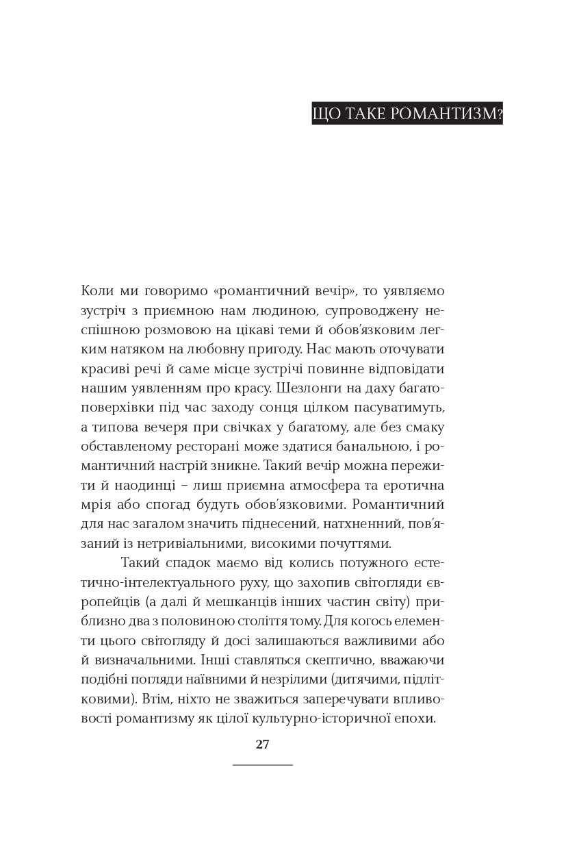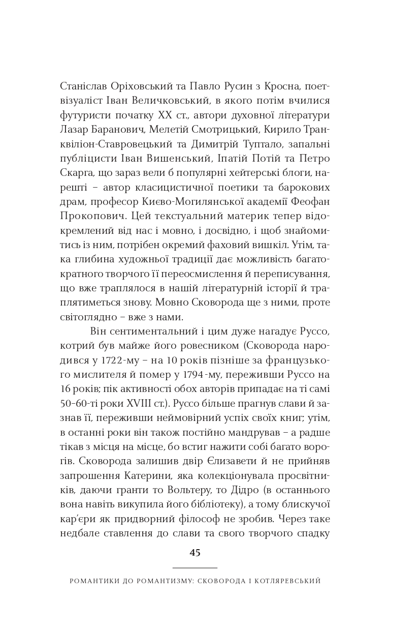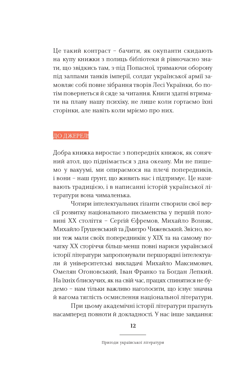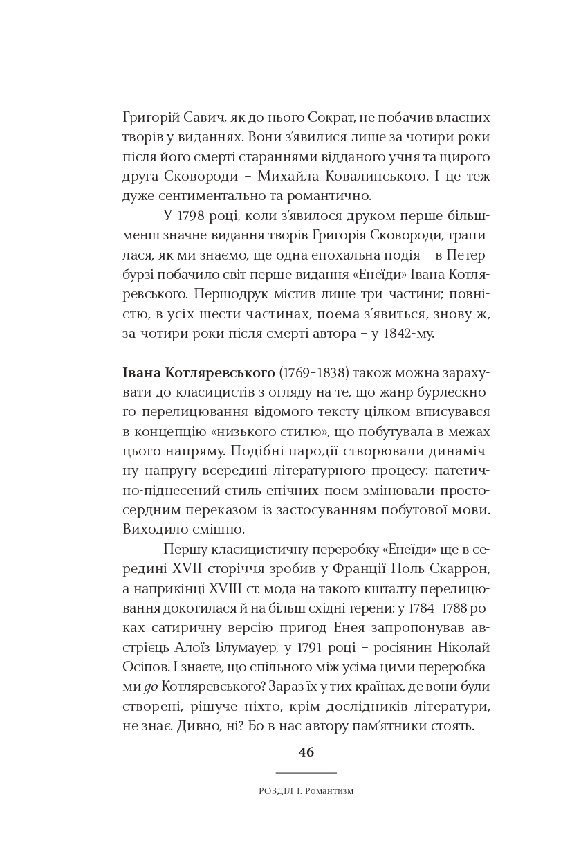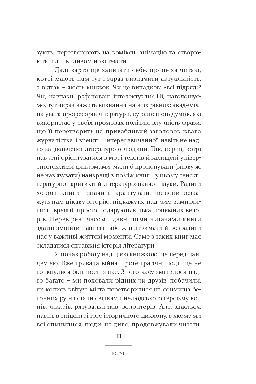Класицизм, романтизм, реалізм, модернізм, постмодернізм — у школі нас вчили, що культура розвивалася саме так. Ростислав Семків переконує: усе не так просто і значно цікавіше. Рухаючись від майже романтика Сковороди до часом постмодерніста Жадана, він пропонує інколи поглянути на стилі та напрями української літератури під незвичним кутом. А найголовніше — побачити самобутню красу і силу в текстах чільних авторів і авторок нашої літератури.