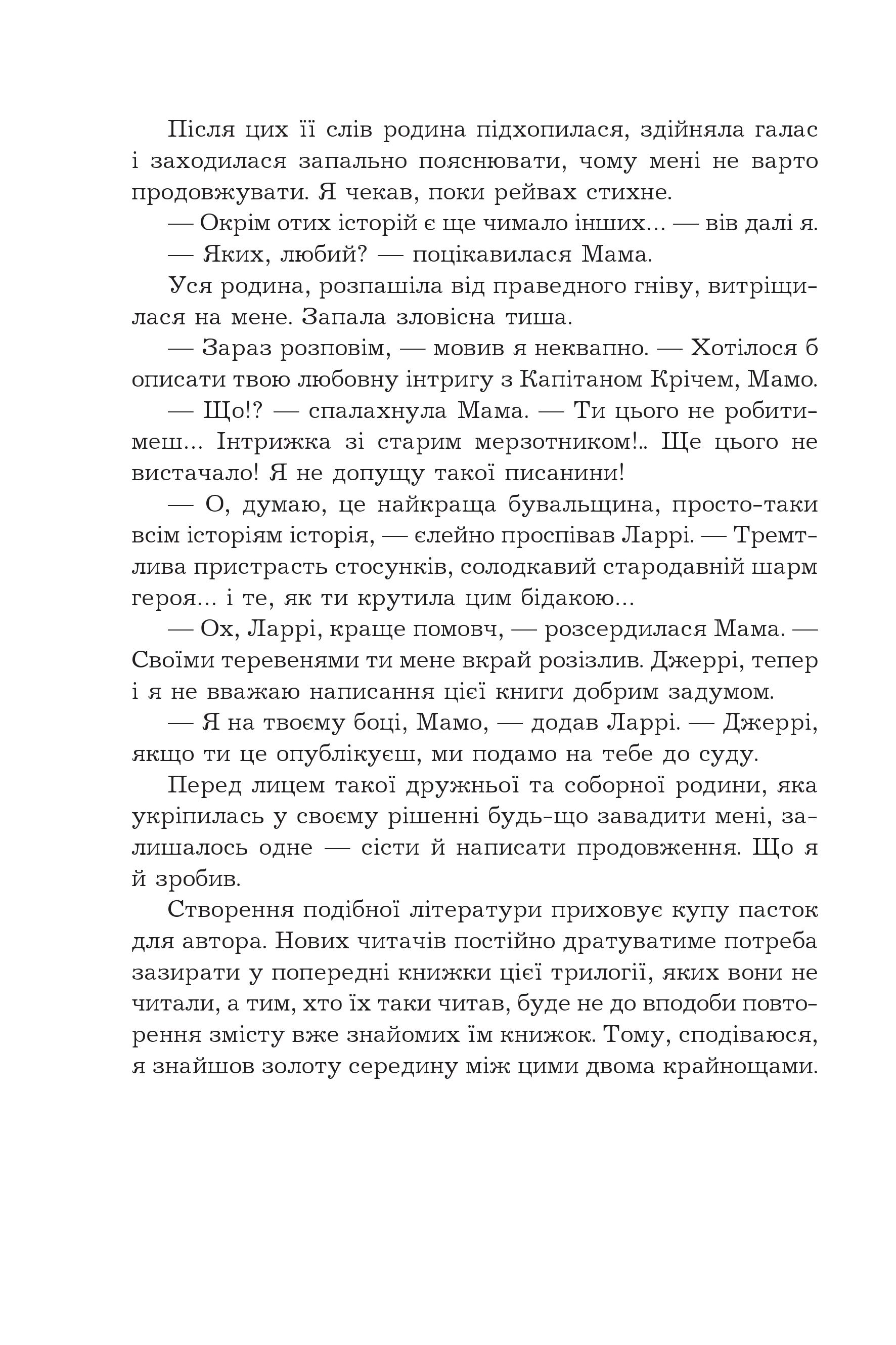Тут розповідаються цікаві та смішні історії, що відбувалися з сім'єю Дарреллів на Корфу, а також про поїздку Марго (а пізніше і Джері з мамою) в Лондон. І не сумнівайтеся, що Джеральд все так само тягтиме в свій дім різноманітних і дивовижних тварин, а кумедна живність буде доводити вас до гомеричного реготу.