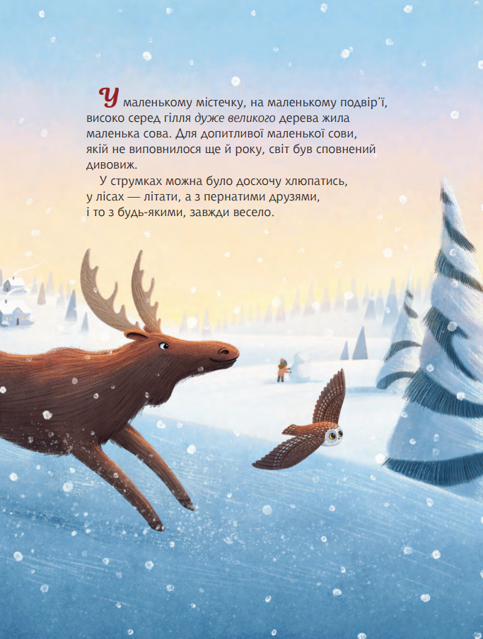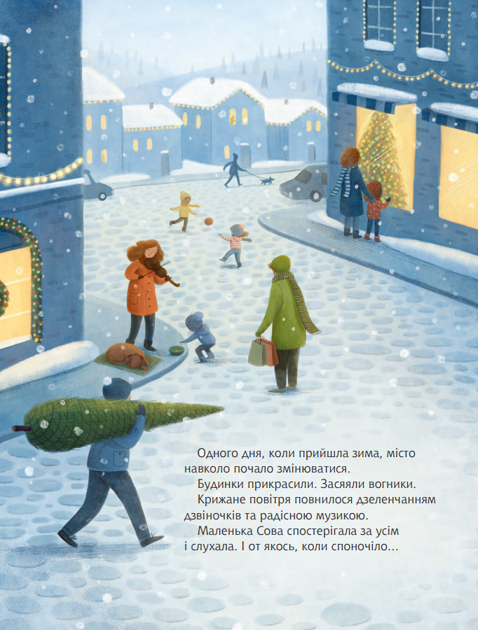 У маленькому містечку високо серед гілля дуже великого дерева жила маленька сова. Одного дня усе навколо раптом замерехтіло і засяяло. Наближалося Різдво… Коли ж пташка повернулася до своєї домівки, то побачила, що ту забрали люди. Вони стверджували, що з цього дерева вийде гарна різдвяна ялинка. Тепер маленька пташка уже не була впевнена, що хоче мати щось спільне з Різдвом…