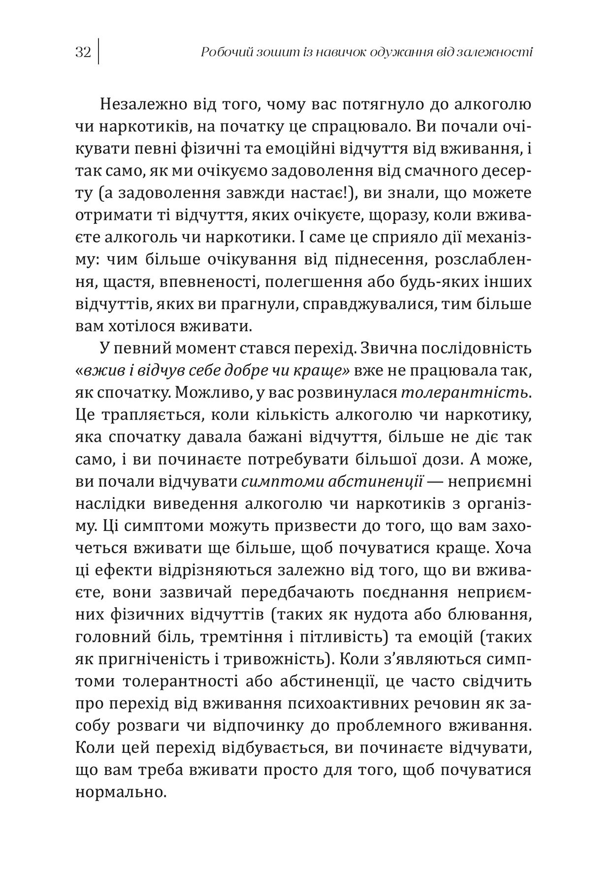 Цю книгу, рекомендовану Асоціацією поведінкової та когнітивної терапії (ABCT), можна використовувати як самостійно, так і як доповнення до реабілітації чи терапії. Вона також стане надійним джерелом інформації для близьких та фахівців, які лікують залежність.
