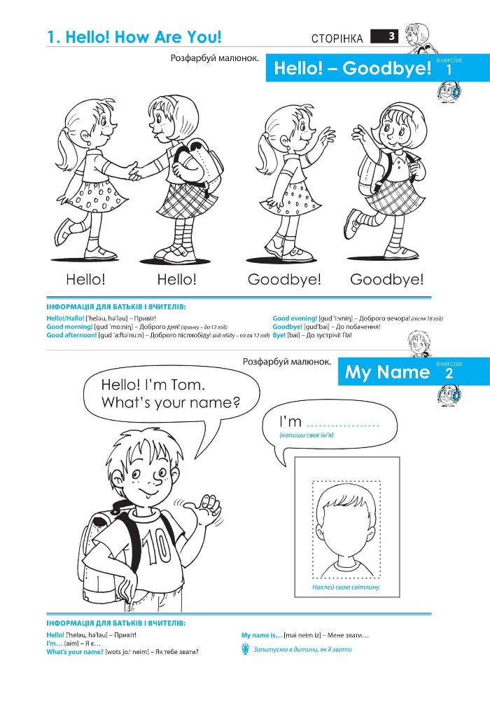 “Розмовна англійська для дітей”– це зошит із кольоровими наліпками, що: допомагає дітям засвоїти основні слова; розвиває дрібну моторику рук; навчає дітей англійських віршиків та пісеньок; містить допоміжний матеріал для батьків і вчителів; дозволяє вивчати мову як індивідуально, так і в групах.