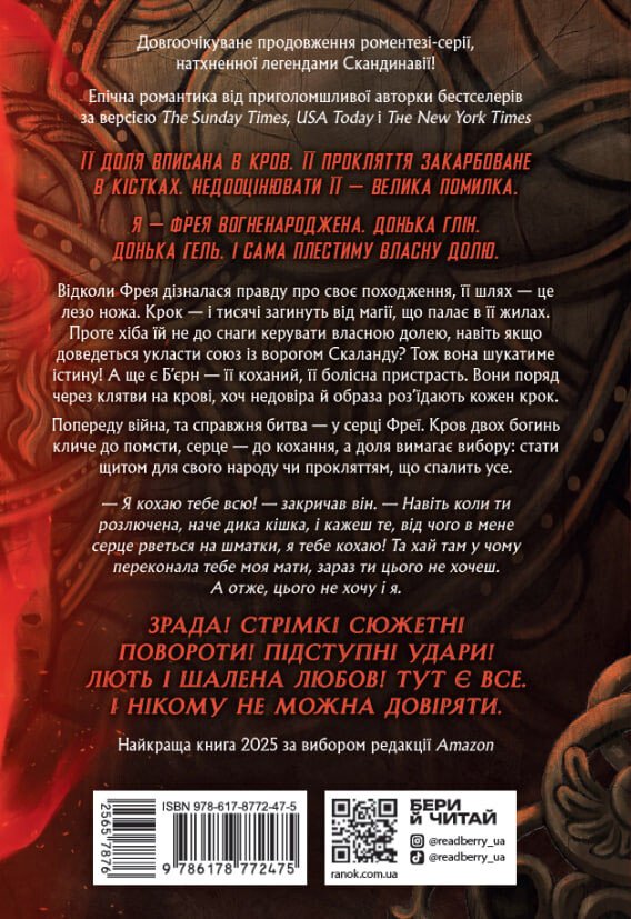 Попереду війна, та справжня битва — у серці Фреї. Кров двох богинь кличе до помсти, серце — до кохання, а доля вимагає вибору: стати щитом для свого народу чи прокляттям, що спалить усе.