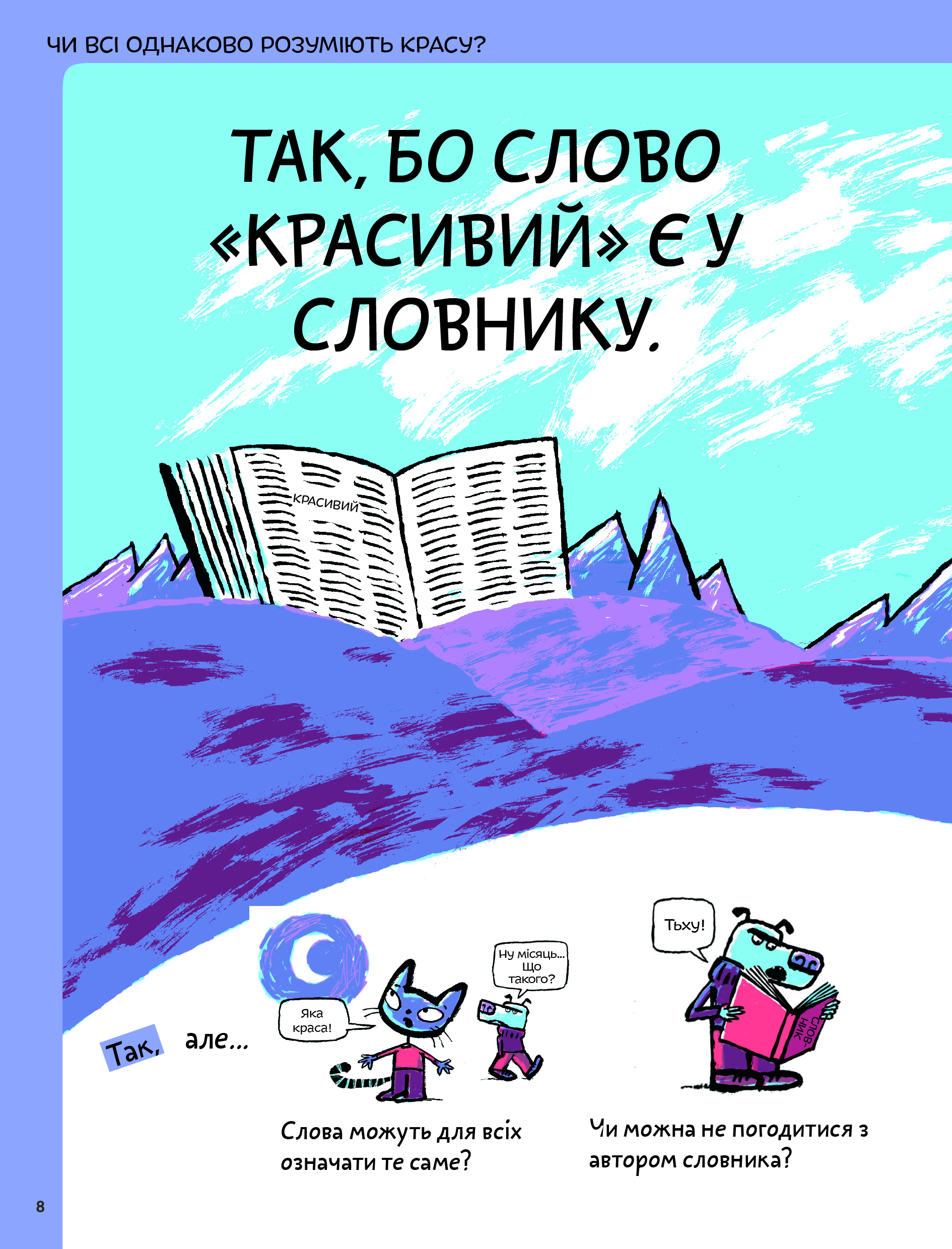 Ці питання ставить Оскар Бреніф’є у своїй книзі, яка запрошує маленьких читачів зануритись у світ краси, мистецтва та творчості. За допомогою роздумів про те, що таке краса, чи можна створювати мистецтво будь-коли і чи має воно бути «правильним», Оскар допомагає дітям зрозуміти, що кожен має право бачити світ по-своєму і створювати щось унікальне.