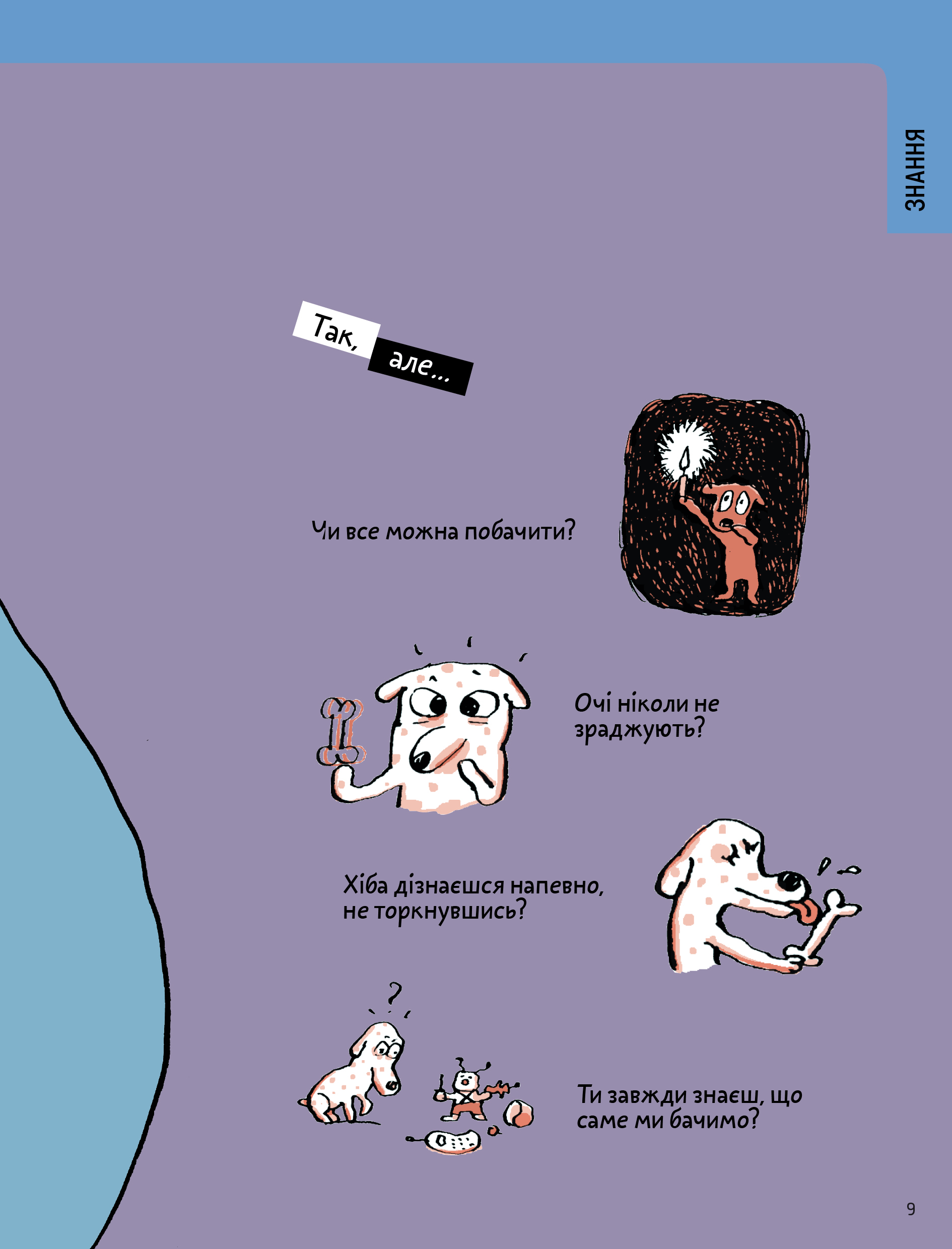 У цій книжці немає правильних відповідей, але є місце для роздумів, розширення горизонту і пошуку власних істин. Через філософські запитання, які кожен з нас може поставити, Оскар допомагає дітям зрозуміти, що мислити — це не лише важливо, а й цікаво.