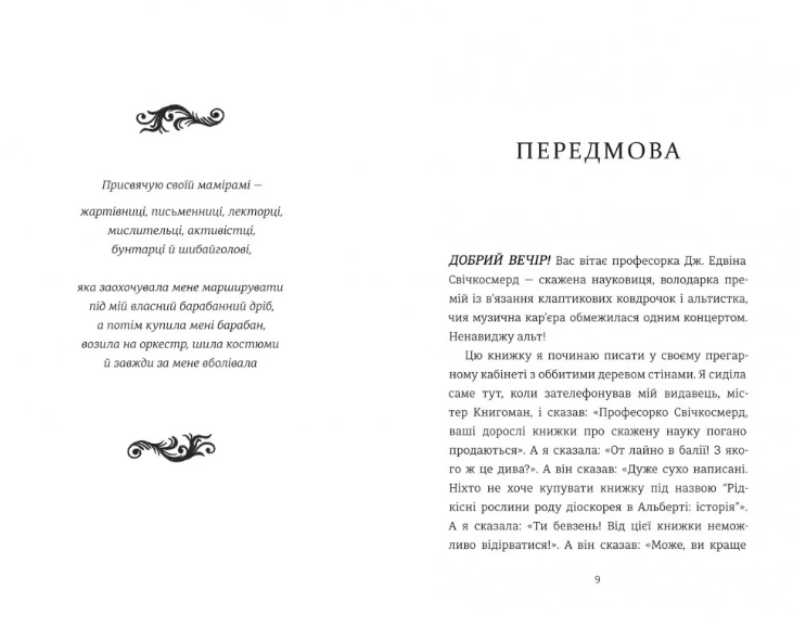 Ніхто на цілім світі, не те що в місті Антикваріум, не мріяв опинитися в руках у Міллісент Квібб — загрозливої, страхітливої, легендарної скаженої науковиці! Та й хто проміняв би захопливі уроки етикету на дивакуваті досліди й польоти на мухоциклі? Хіба що сестрички Порч — Ґертруда, Євгенія та Ді-Ді, яким судилося не просто пізнати скажену науку, а й порятувати рідне місто від зловісних змовників.