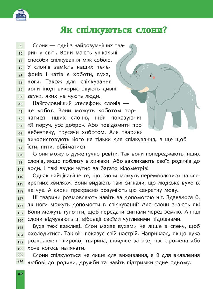 Посібник створено для учнів 2 класу, які прагнуть удосконалити навички швидкого і свідомого читання. Поступове ускладнення оригінальних текстів сприяє підвищенню темпу читання, розвитку артикуляції та розширенню зорового сприймання. Завдання на глибоке розуміння прочитаного, аналіз змісту, встановлення логічних зв’язків і виявлення прихованих сенсів допомагають сформувати у дитини навички критичного мислення. Творчі вправи мотивують до фантазування, переосмислення тексту та мовленнєвого розвитку.