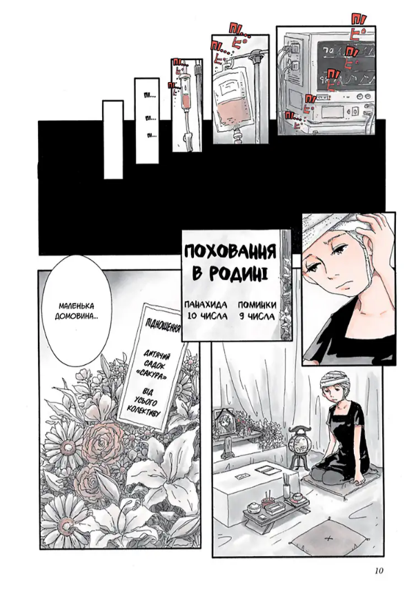 Тихе щасливе життя звичайної родини, Юкі, Наокі й маленького Шю, трагічно обриває нещасний випадок. Один птах, одна випадковість, одна фатальна подія — і стільки доль полетіло шкереберть! Збираючи докупи уламки й навчаючись жити із безоднею там, де раніше було серце, неможливо не запитувати себе: «Як так сталося? Чому? За що? Скільки це все триватиме?».