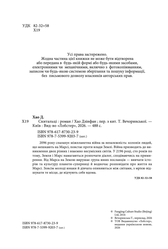 «Скитальці» — “Vagabonds” — це глибокий науково-фантастичний роман китайської письменниці Хао Дзінфан, який досліджує складні питання ідентичності, культури та політичного протистояння. Дія відбувається у XXII столітті, де людство розділене між Землею та колонією на Марсі.