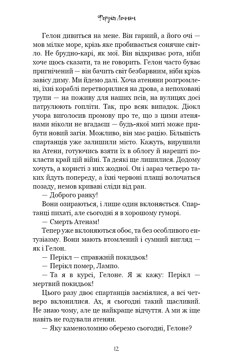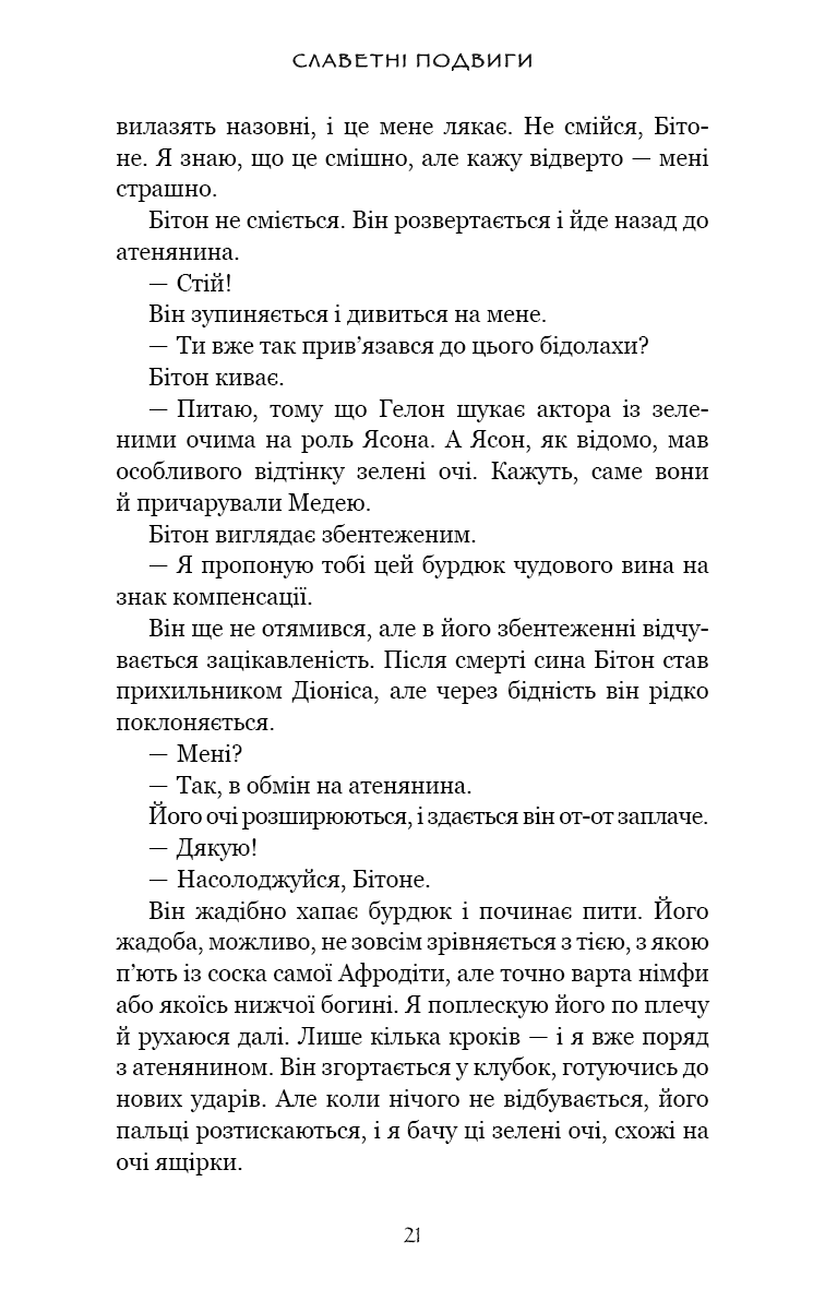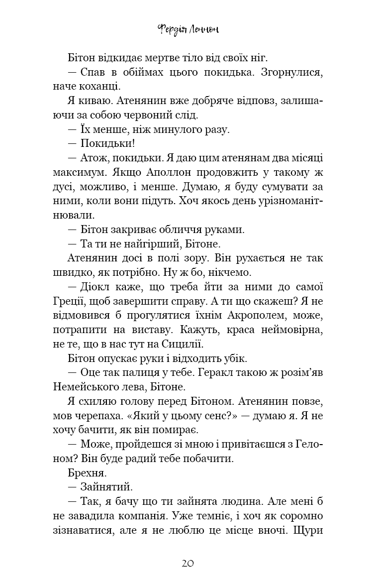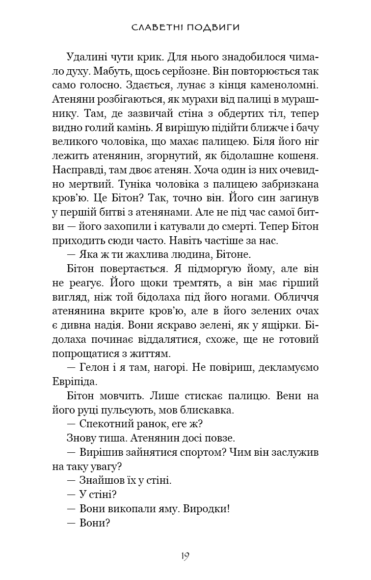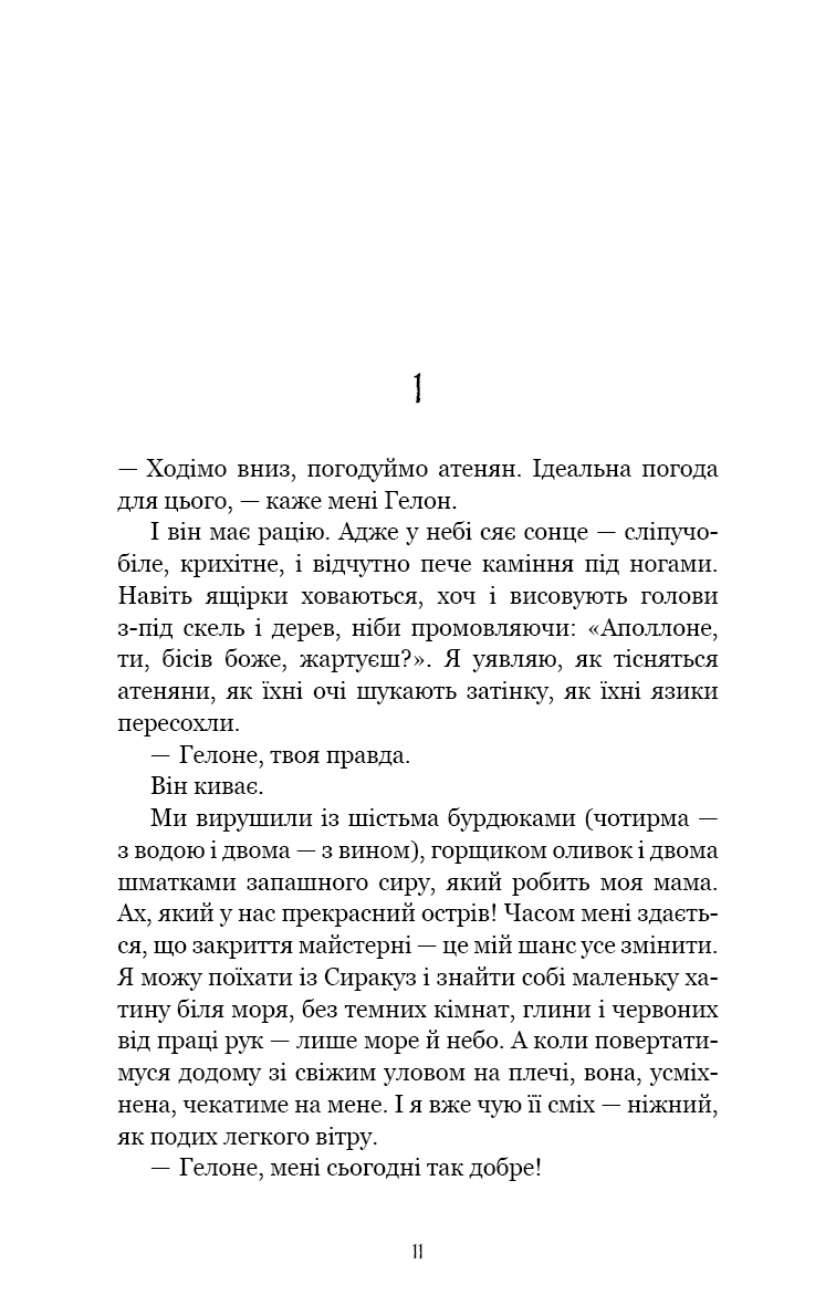 Ув’язнені в сиракузьких каменоломнях тисячі переможених атенян тримаються на волосині від смерті. Вони повільно згасають під палючим сонцем, проте полонені досі можуть читати грецькі трагедії, якщо підманити їх ковтком вина та шматком хліба. Так народжується ідея. Адже загарбників можна ненавидіти — але при цьому щиро любити їхню поезію.