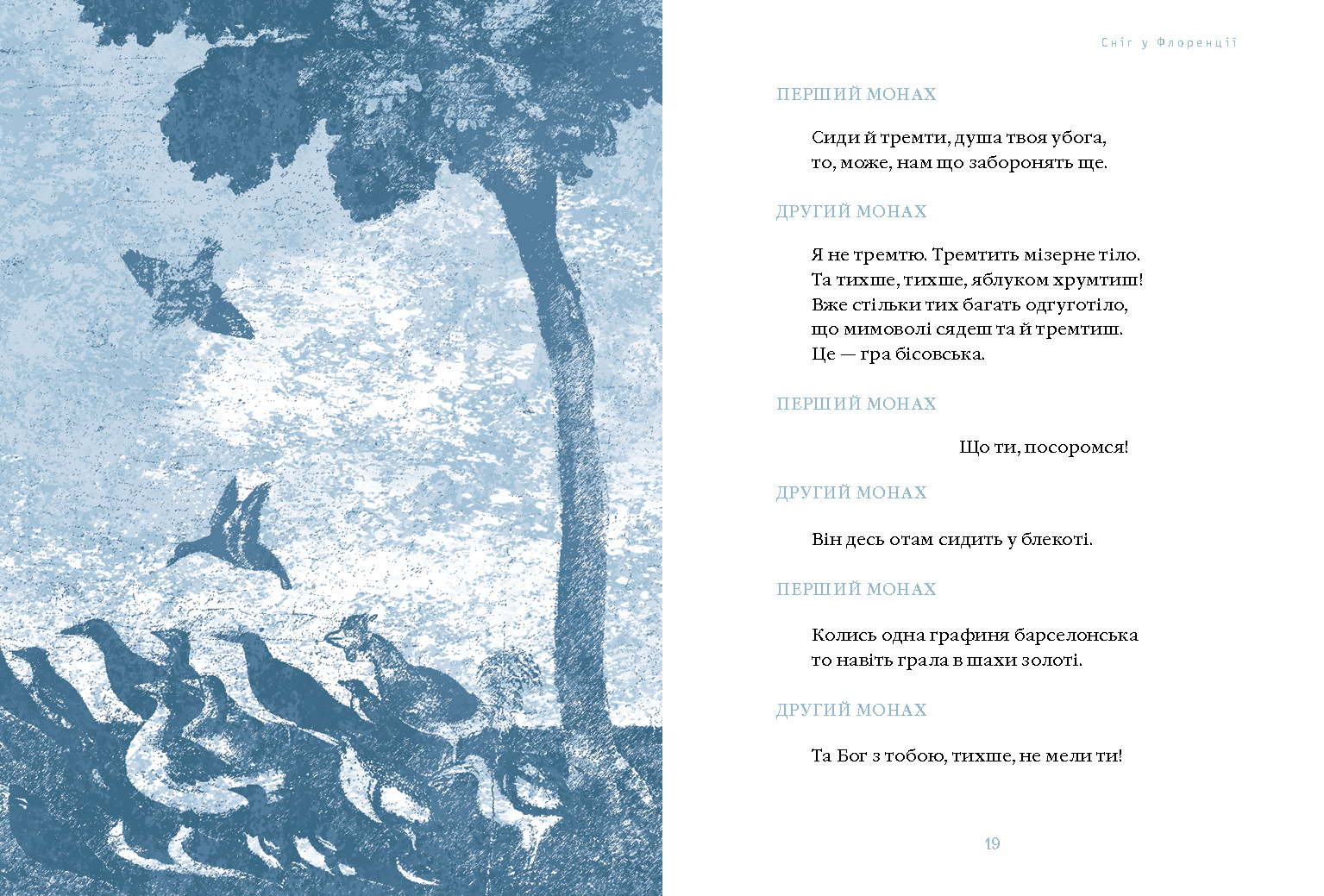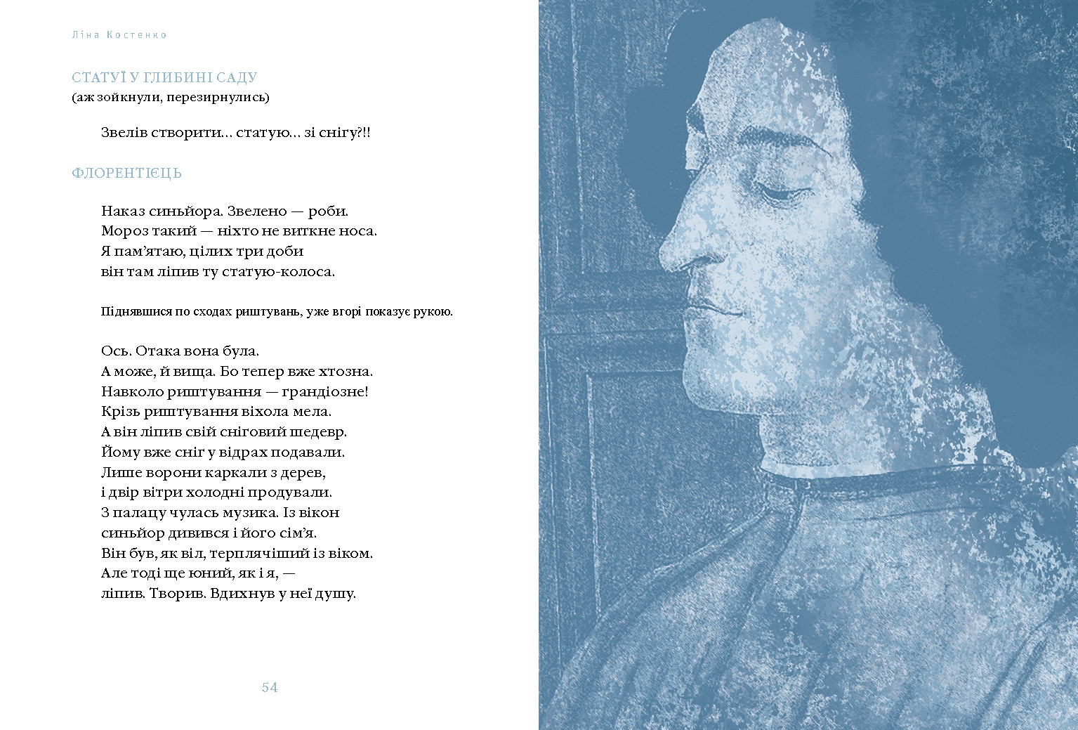 Видатний, але напівзабутий скульптор італійського Відродження Джованфранческо Рустичі був заново відкритий в Італії 2010 року. Однак Ліна Костенко звернула на нього свій погляд на чверть століття раніше — в середині 1980-х. У поетичному шедеврі «Сніг у Флоренції» сплітаються філософія мистецтва і пронизлива любов, психоаналіз і бурхливі події в Європі ХVІ століття. Вишукано і фантазійно побачена в драматичній поемі ренесансна Флоренція стає глибоко актуальною метафорою свободи митця, а відтак його здатності творити непідвладний часові «сад нетанучих скульптур».