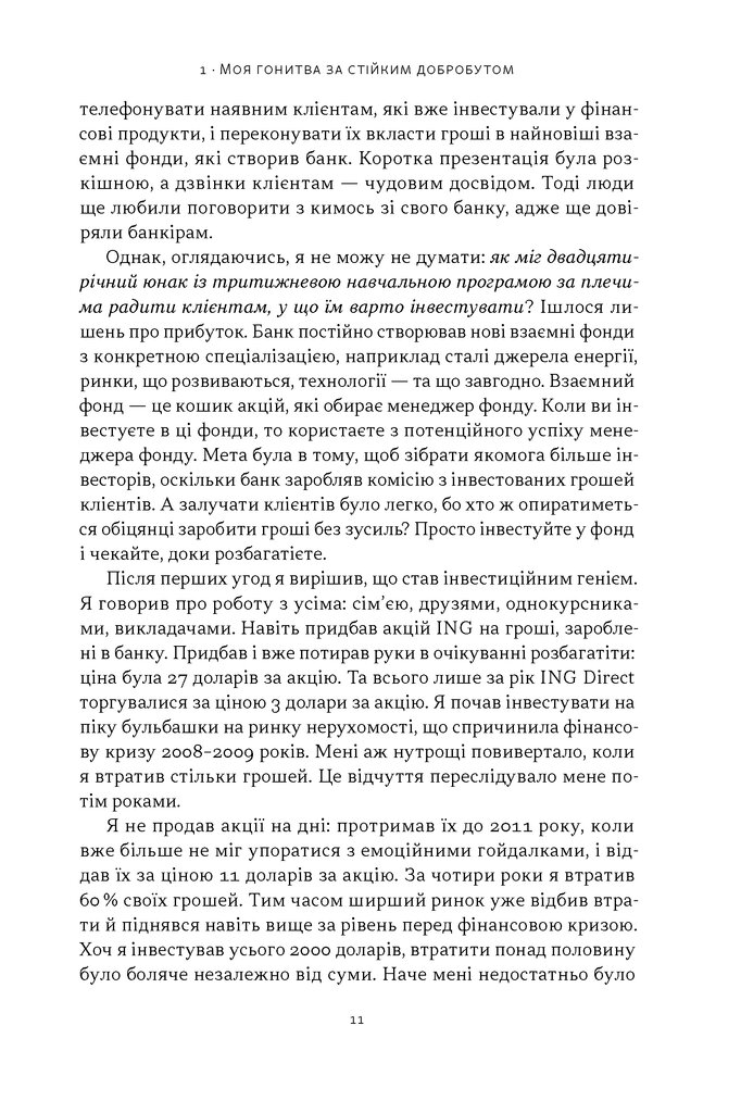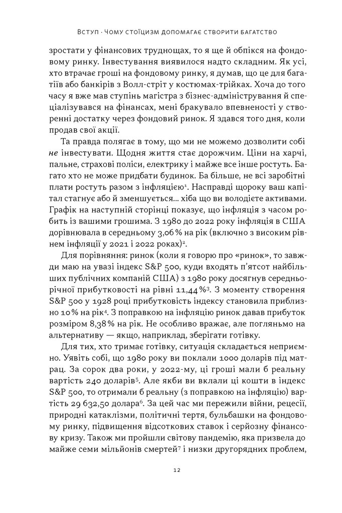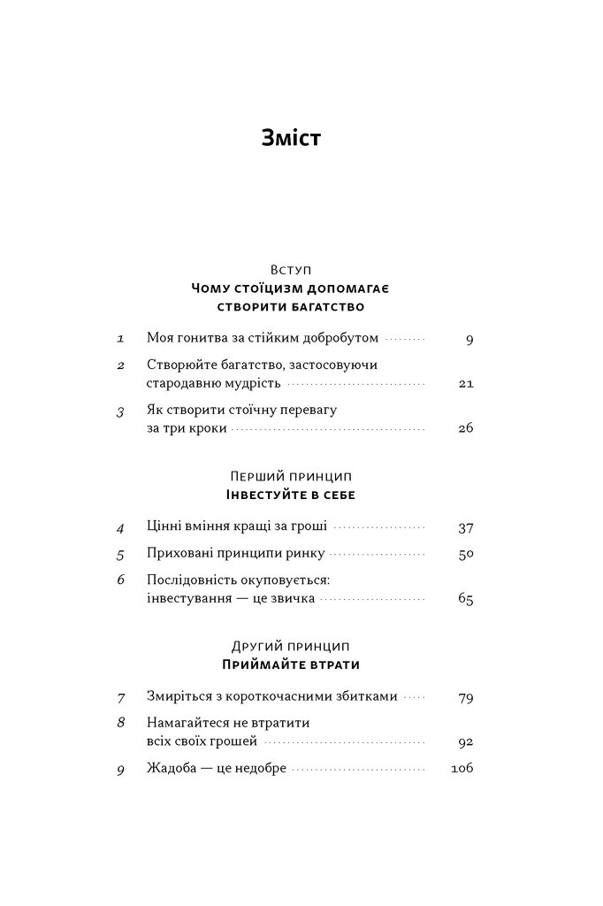 Для українців, які щодня стикаються з викликами війни, ця книжка особливо актуальна. Вона навчає фокусуватися на тому, що можемо контролювати: власних судженнях, діях і звичках системного інвестування. Автор пропонує три ключові принципи: інвестувати у власні вміння, приймати короткострокові втрати без паніки і послідовно примножувати капітал завдяки довгостроковій візії. Практичні поради, історії та приклади провідних інвесторів, а також стоїчні методи інвестування допоможуть вибудувати фінансову стійкість. Ви навчитеся дотримуватися обраного курсу, розвинете дисципліну та зрозумієте, чому послідовність і внутрішній спокій цінніші за гонитву за швидким прибутком.