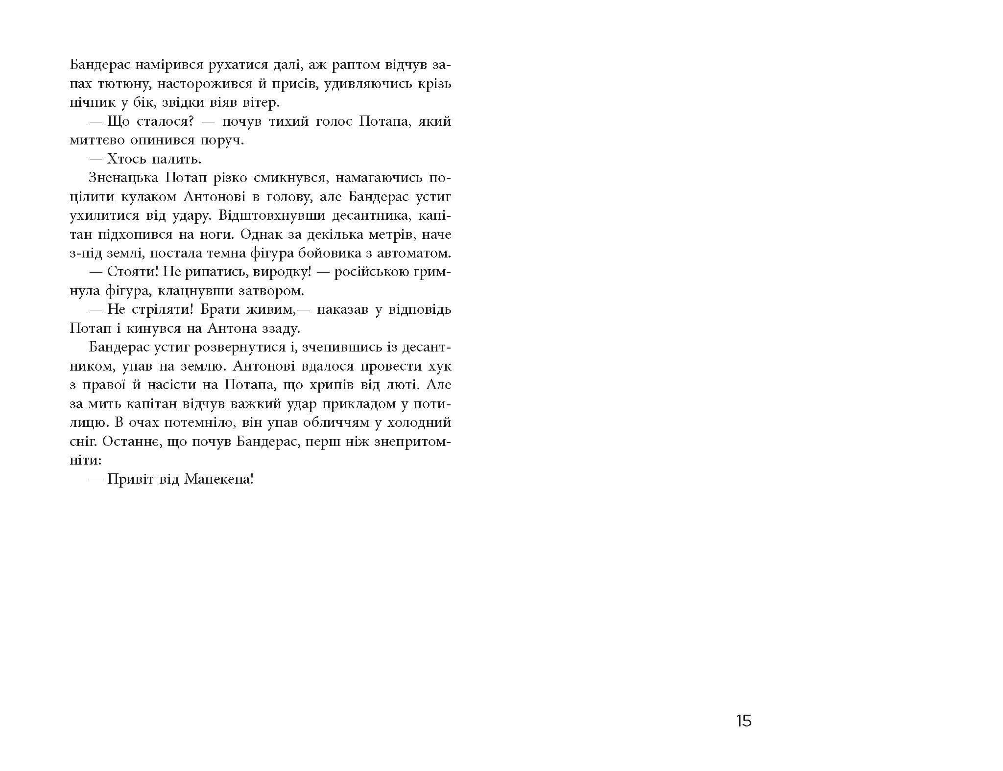І знову капітан Антон Саєнко, розвідник із позивним Бандерас, сучасний козак Мамай, протистоїть підступному й жорстокому російськомудиверсанту Манекену та його поплічникам. Але цього разу він намагається врятувати не лише життя людей, а й міжнародний авторитет України, захистити історію, культурні та духовні цінності держави. Смертельно небезпечні пригоди, чудотворні ікони, красуня-черниця…