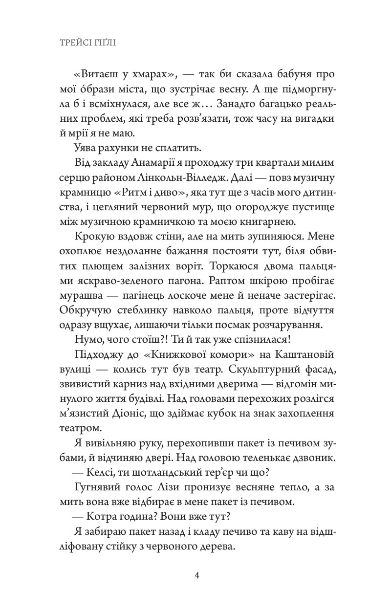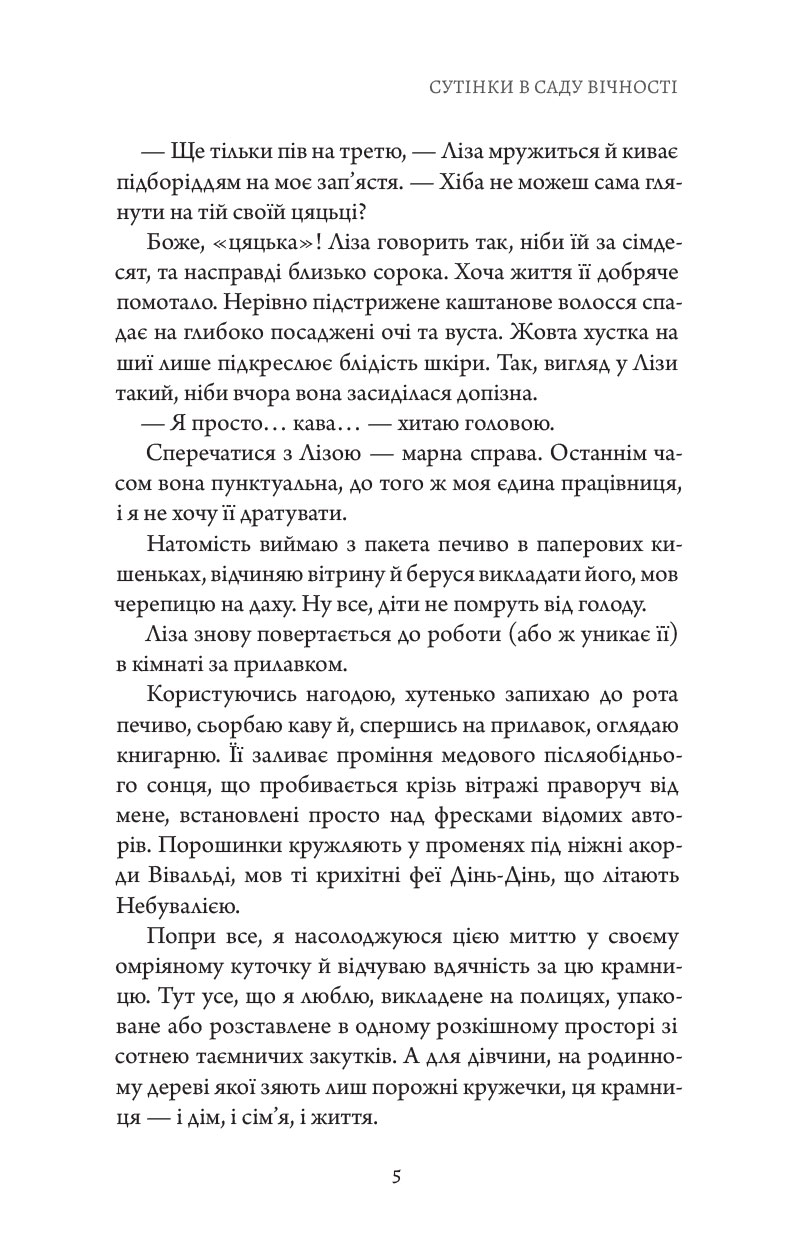 І саме тоді, в сутінках, поруч із книгарнею на покинутому пустирі починає світитися загадкове світло. Келсі ступає у нього – і опиняється на дивній вечірці у чарівному Саду, серед незнайомців, які висловлюють підтримку, ставлять правильні запитання і ніби бачать її наскрізь.