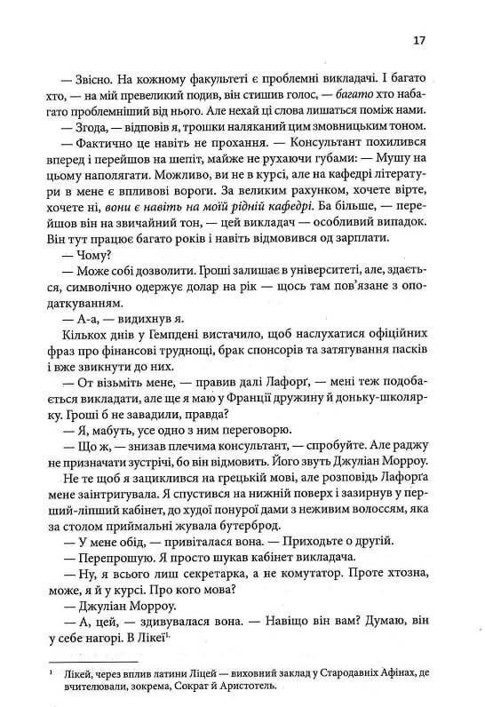 Молоді люди майже весь час разом, і ніщо не віщує біди. Проте любов до античної культури врешті-решт призводить до зовсім не давньогрецької трагедії, і на землю біля коледжу проливається кров…