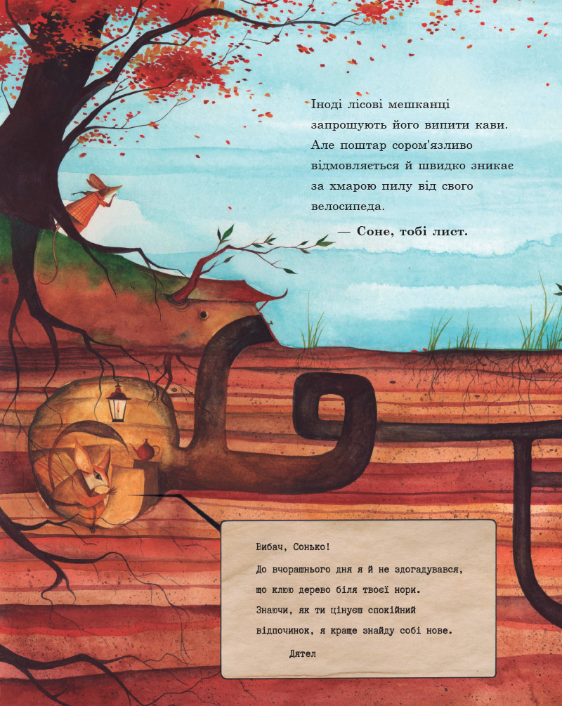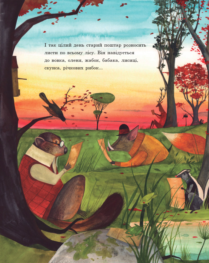 Сюжет книги розповідає про те, як щодня старий борсук доставляє пошту усім лісовим мешканцям. Часом це особливі листи, від яких звірі дуже тішаться. Ось лише сам лісовий поштар ніколи не отримував листів. Та все зміниться, коли він вперше здивовано промовить: – Поштарю, тобі лист.