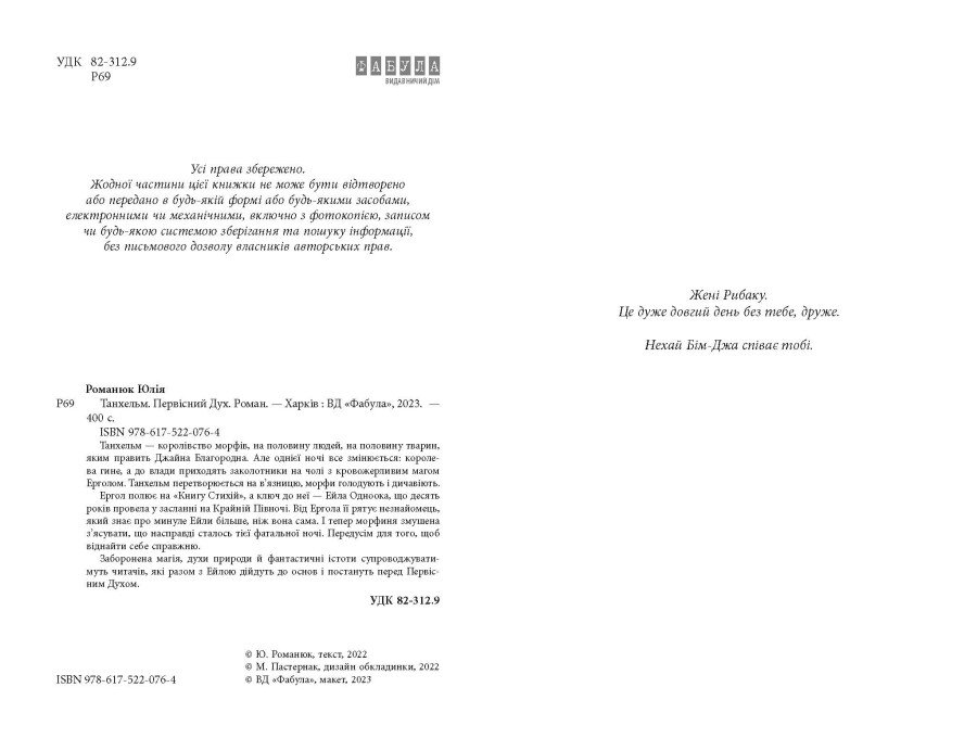 Танхельм — королівство морфів, на половину людей, на половину тварин, яким править Джайна Благородна. Але однієї ночі все змінюється: королева гине, а до влади приходять заколотники на чолі з кровожерливим магом Ерголом. Танхельм перетворюється на в'язницю, морфи голодують і дичавіють. Ергол полює на «Книгу Стихій», а ключ до неї — Ейла Одноока, що десять років провела у засланні на Крайній Півночі. Від Ергола її рятує незнайомець, який знає про минуле Ейли більше, ніж вона сама. І тепер морфиня змушена з’ясувати, що насправді сталось тієї фатальної ночі. Передусім для того, щоб віднайти себе справжню. Заборонена магія, духи природи й фантастичні істоти супроводжуватимуть читачів, які разом з Ейлою дійдуть до основ і постануть перед Первісним Духом.