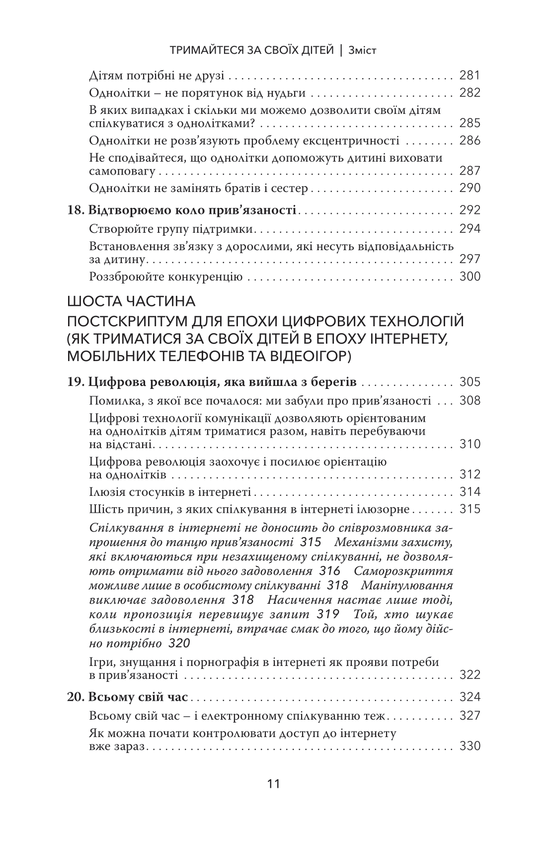 Пропонуючи ефективні стратегії збереження та відновлення стосунків дитини з батьками, ця книга пропонує нові природні альтернативи сучасним надуманим методам контролю поведінки. Зміст книги відгукнеться батькам дітей будь-якого віку, починаючи від немовлят і закінчуючи дорослими дітьми. Читачі часто зауважують, скільки труднощів і плутанини вони могли б уникнути, якби цей матеріал був їм доступний із самого початку. Оригінальне видання вийшло у 2004 році, безпосередньо перед появою Facebook та інших соціальних медіа. Озираючись назад, можна побачити, на скільки влучно книга передбачила, але не могла повністю уявити вплив цифрової революції. В 2013 році книга була видана з додатковими розділами про виховання дітей у цифровому світі.