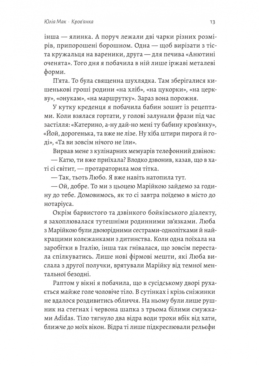 Це бабусині пиріжки, що своїми пахощами перебивають звуки повітряної тривоги. І ліхтарик, що світить у темряві крізь кілька поколінь. Це золотава коробка зі здійсненим бажанням і просто чай у термосі, дбайливо приготований мамою. Це кіт, що сопе біля ніг, і курочки, які виходять із хліва — на волю, до світла. Це легенда про меч Єдності і видиво зі спаленням дідуха, незручна шапка з кроля і дідовий шашлик. А ще — тиха-тиха молитва Бога.