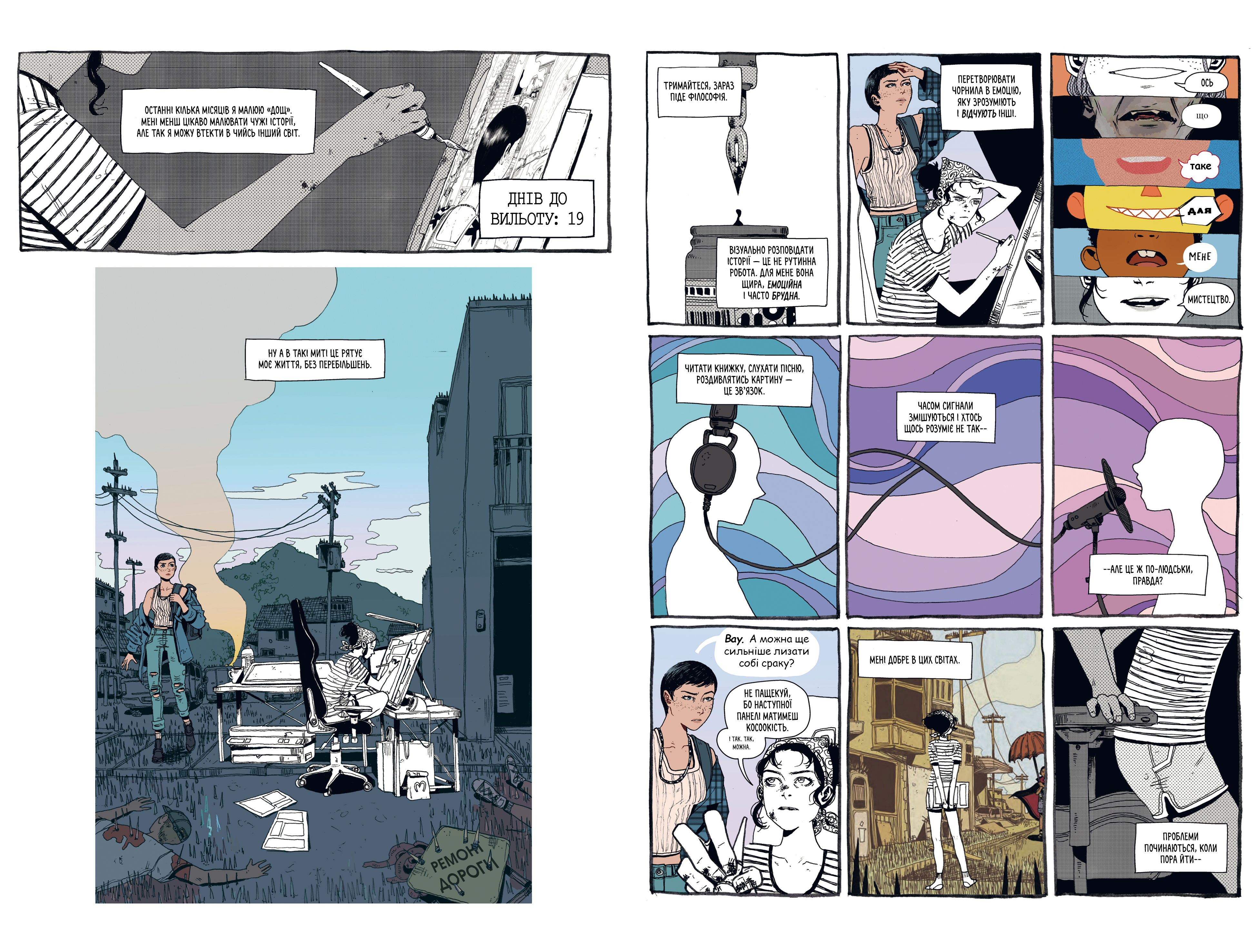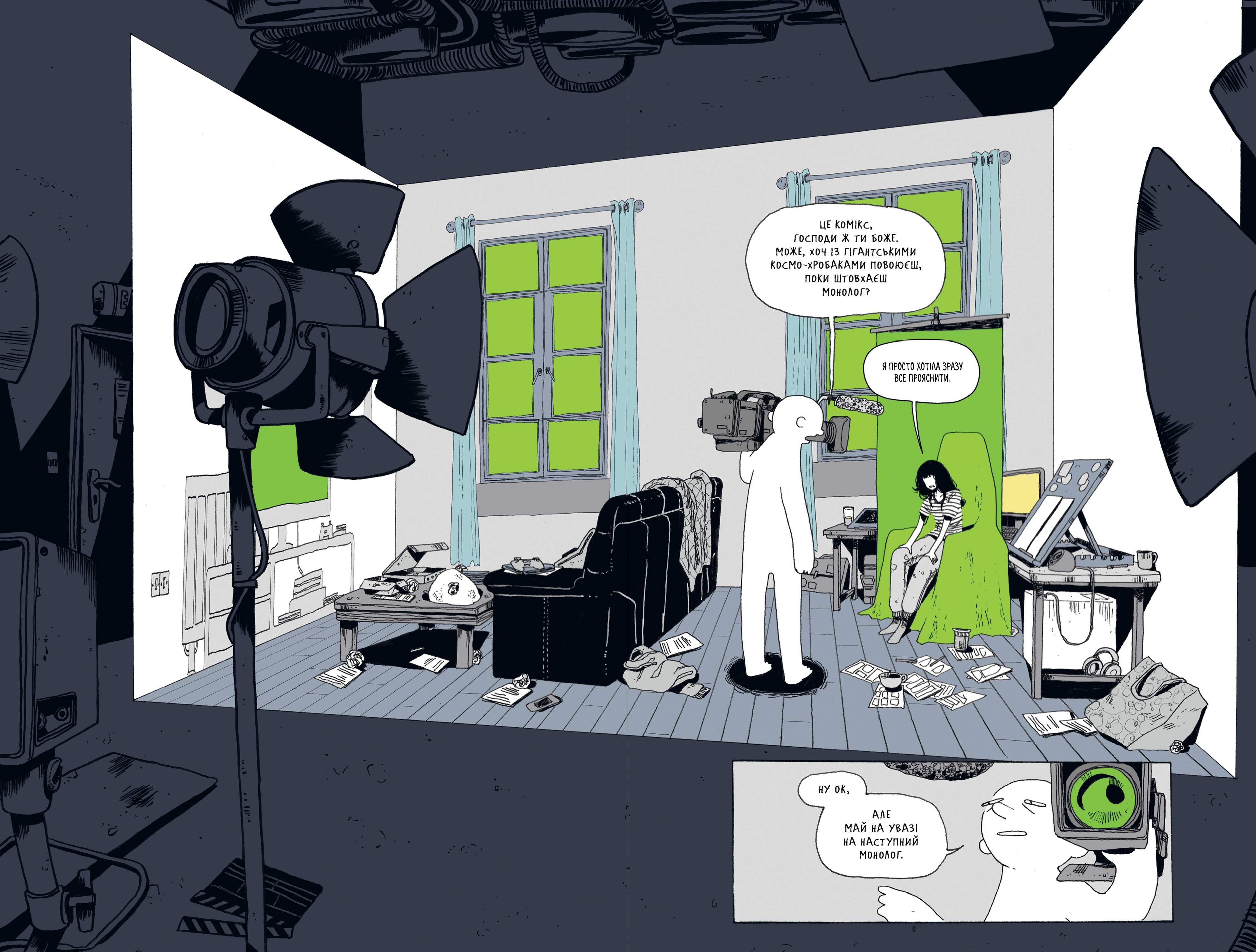 «У ЦЕНТРІ ВСЕСВІТУ САМОТНЬО» — особистий метанаратив про життя художниці-егоїстки, якій доводиться творити заради власного виживання, номінований на премії Айснера й Рінґо. Це оригінально й тонко змальований психологічний портрет молодої жінки, яка на хвилях тривожності, депресії й синдрому самозванки тримає курс на успішну карʼєру коміксистки й дорогою знаходить себе.