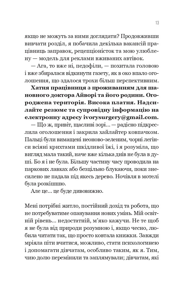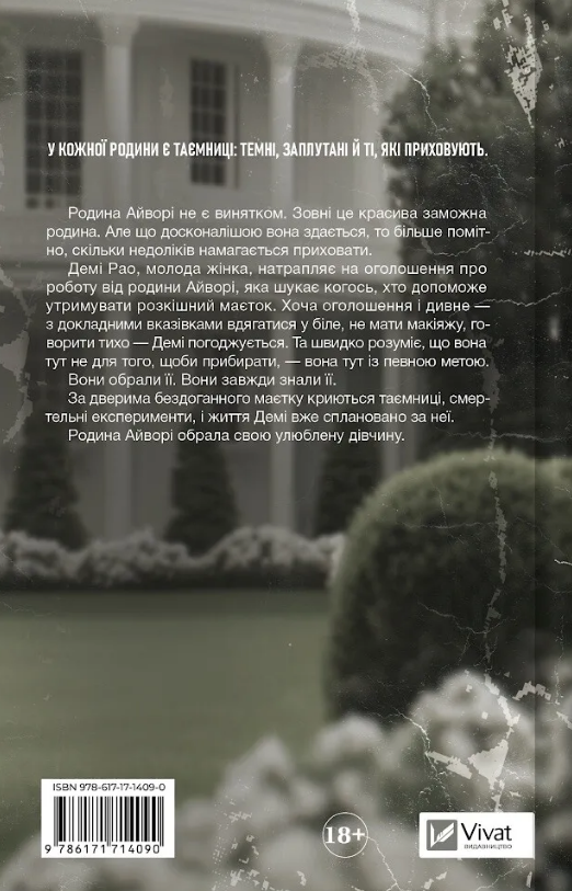 Демі Рао, молода жінка, натрапляє на оголошення про роботу від родини Айворі, яка шукає когось, хто допоможе утримувати розкішний маєток. Хоча оголошення і дивне — з докладними вказівками вдягатися у біле, не мати макіяжу, говорити тихо — Демі погоджується. Та швидко розуміє, що вона тут не для того, щоби прибирати, — вона тут із певною метою. Вони обрали її. Вони завжди знали її. За дверима бездоганного маєтку криються таємниці, смертельні експерименти, і життя Демі вже сплановано за неї. Родина Айворі обрала свою улюблену дівчину.