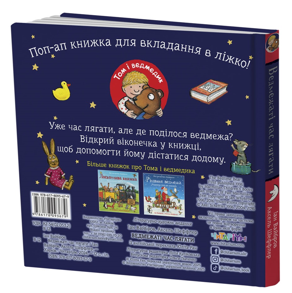 “Ведмежаті час лягати” розповідає про ведмедика, який вирушає на нічну пригоду, готуючись до сну. Але на його шляху чекають різні завдання та веселі сюрпризи! Маленьким читачам доведеться допомогти ведмедику знайти його ліжко, відкриваючи віконечка і розкриваючи секрети кожної сторінки. Ця книга наповнена теплом, дружніми моментами та чудовими ілюстраціями, що роблять час перед сном ще більш чарівним.