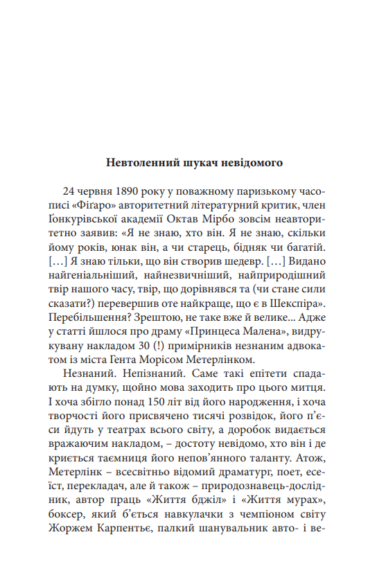 Моріс Метерлінк (1862–1949) — видатний бельгійський драматург, поет, есеїст і перекладач.