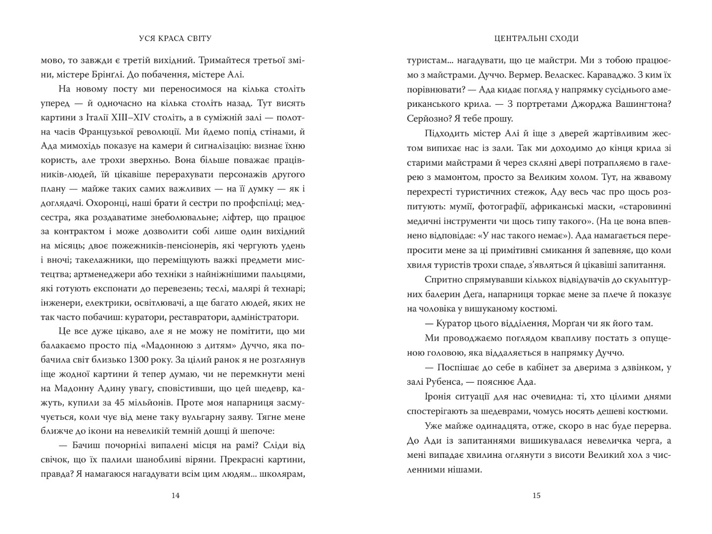 Мільйони людей щороку піднімаються величними мармуровими сходами, щоб відвідати музей мистецтва Метрополітен. Але лише обрані мають необмежений доступ до кожного куточка. Це охоронці, які непомітно блукають у темно-синіх костюмах, пильно стежачи за скарбницею площею два мільйони квадратних футів. Захоплений своєю кар'єрою в журналі The New Yorker, Патрік Брінґлі ніколи не думав, що стане одним з них. Проте коли у його старшого брата діагностували смертельну хворобу, Патрік відчув потребу втекти від галасу повсякденного життя. Тому він звільнився з The New Yorker і відправився шукати розради в найкрасивішому місці, яке знав — музеї мистецтва Метрополітен.