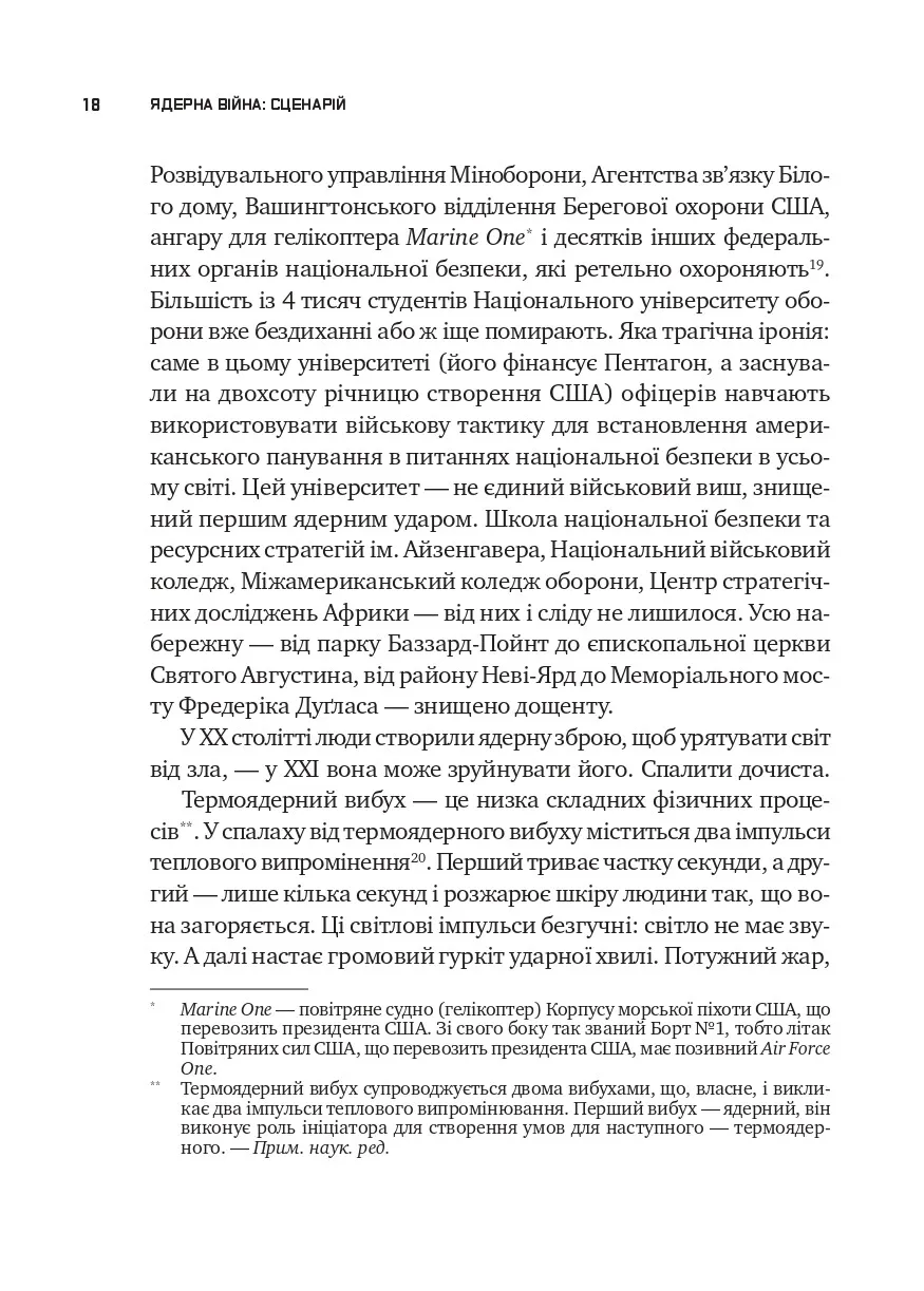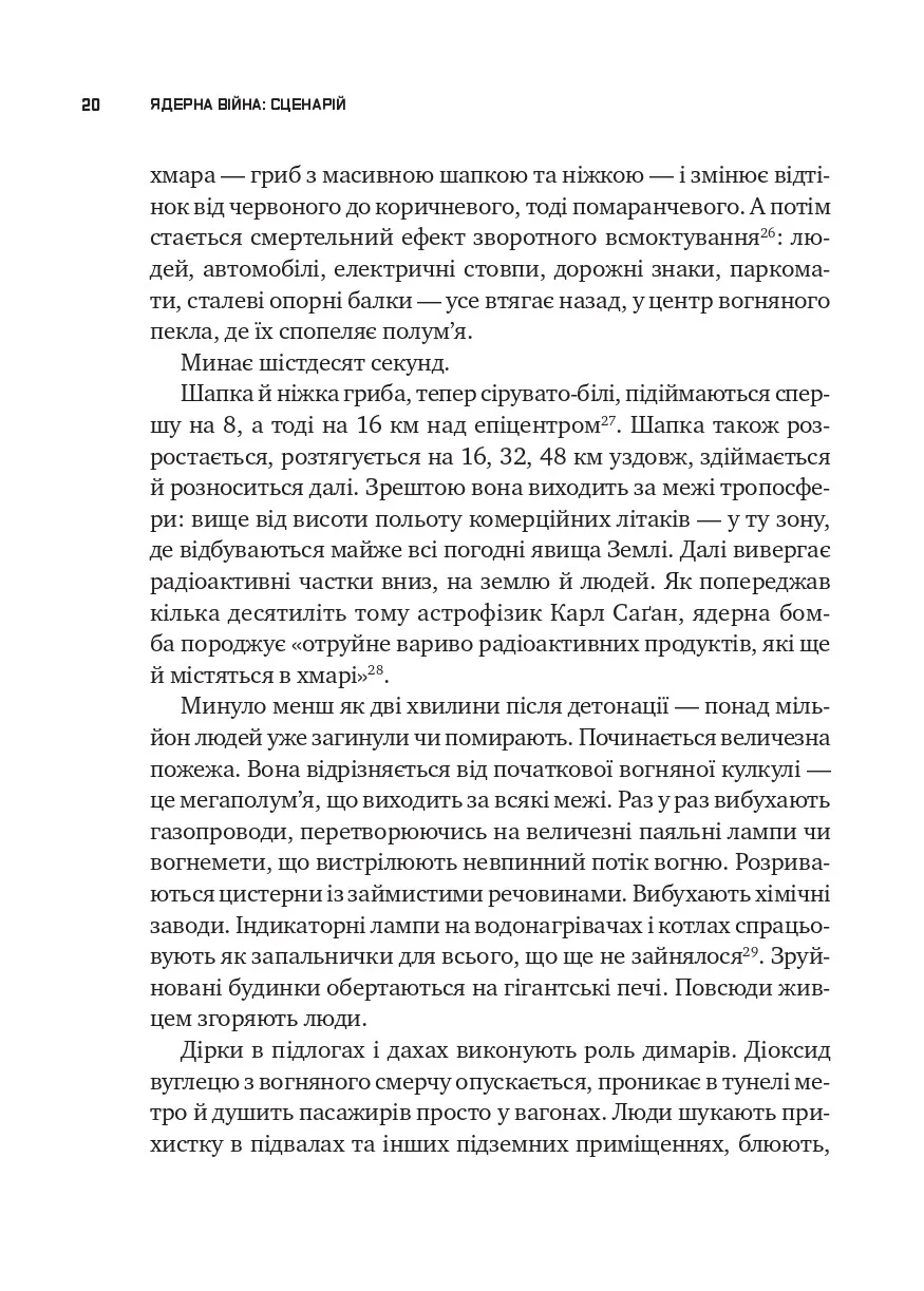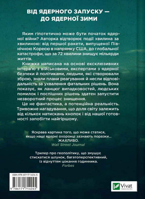 Яким гіпотетично може бути початок ядерної війни? Авторка відтворює події хвилина за хвилиною: від першої ракети, випущеної Північною Кореєю в напрямку США, до глобальної катастрофи, що за 72 хвилини знищує мільярди життів.