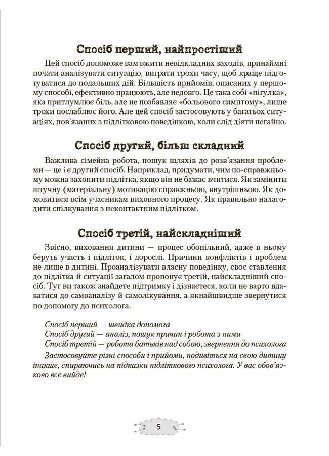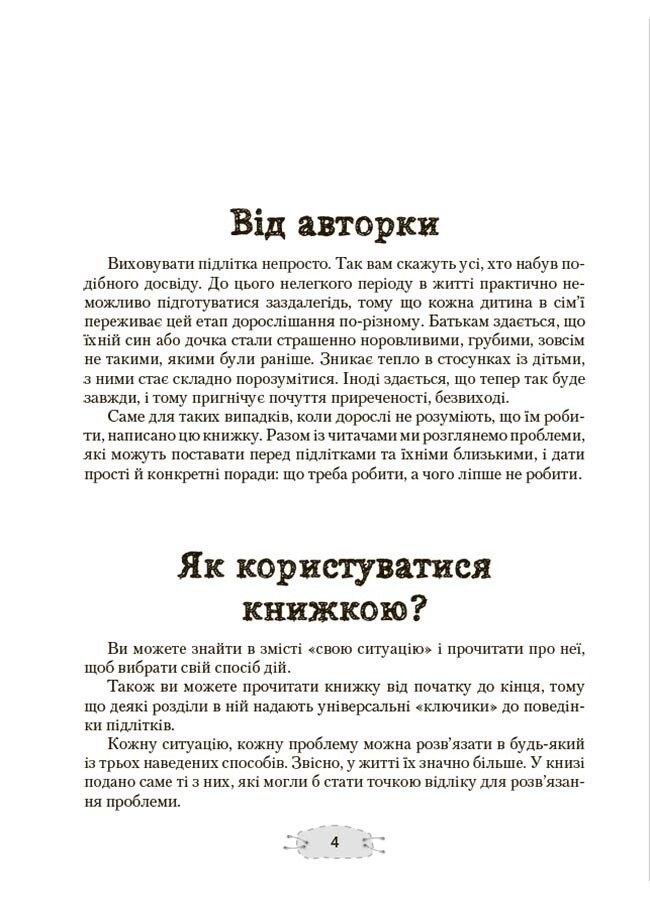 До кожної ситуації наведено три способи, які могли б стати точкою відліку для розв’язання проблеми. Ця книжка для батьків підлітків, яка допоможе зрозуміти та побачити у своїй дитині хороше, навіть якщо цього зараз не видно.