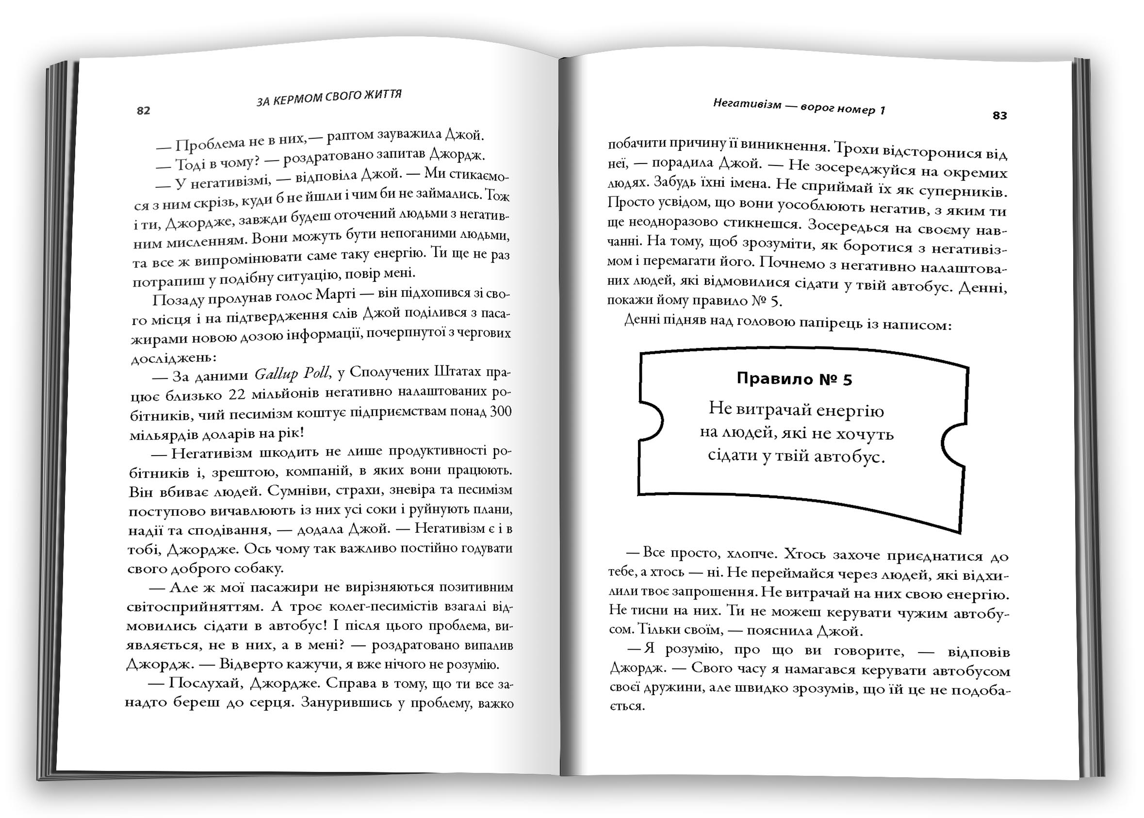 "За кермом свого життя" - книга-притча, яка вже змінила на краще долю багатьох тисяч людей у всьому світі. Її в однаковій мірі хвалять спортивні тренери та президенти всесвітньо відомих компаній, менеджери і вчителі, футболісти і домогосподарки. Автор розповідає про складні речі настільки простою мовою, подає комплексні ідеї у такій дохідливій та лаконічній формі, що вони закарбовуються на підкірці головного мозку, аби сплисти читачеві на розум у той момент, коли у його житті виникне відповідна ситуація.