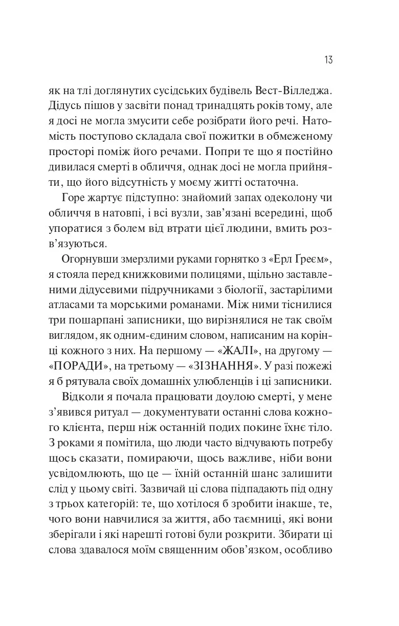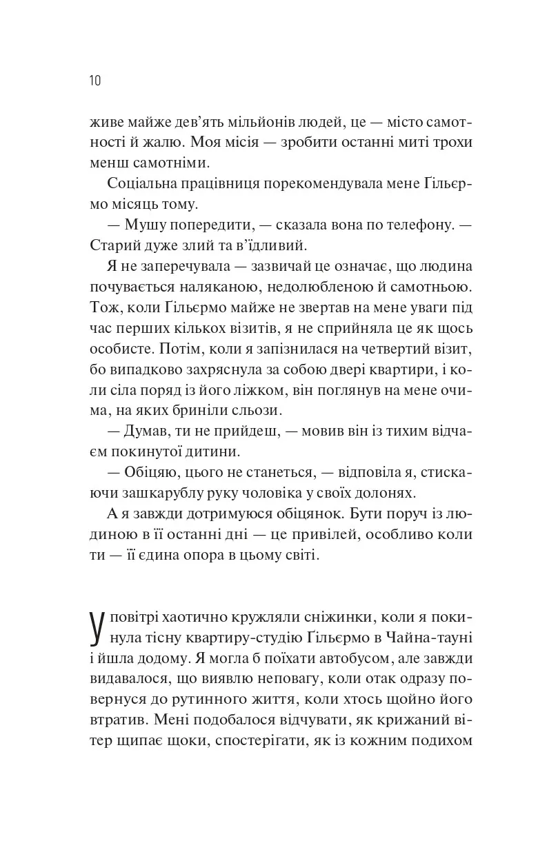Кловер Брукс забула, як жити. Можливо, тому що піклується про людей впродовж останніх днів їхнього життя, працюючи доулою смерті в Нью-Йорку. А може, тому що має власний жаль, який не може відпустити.