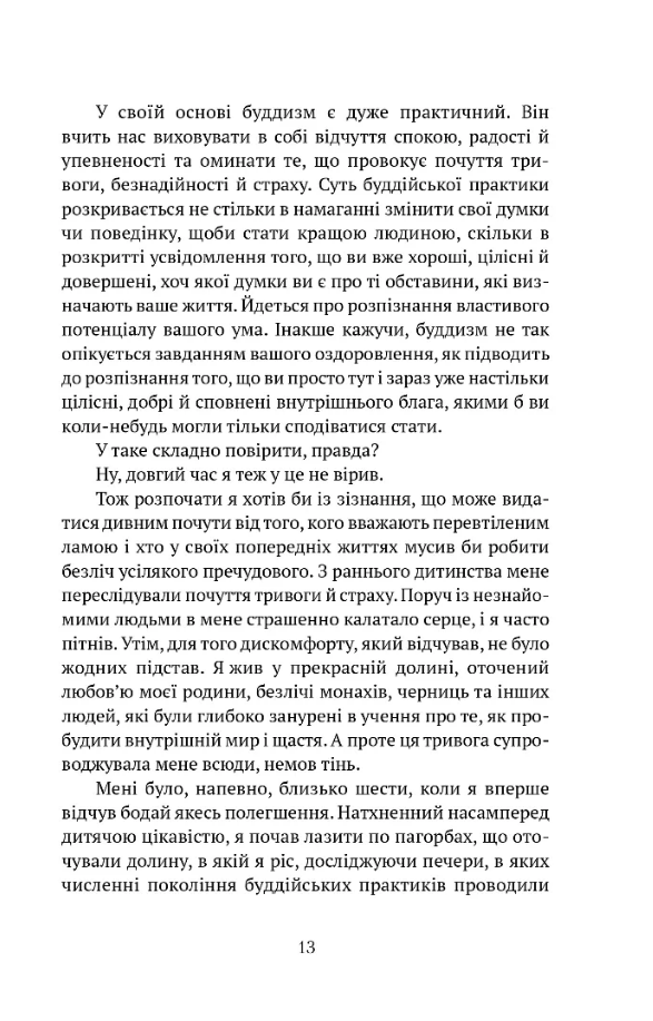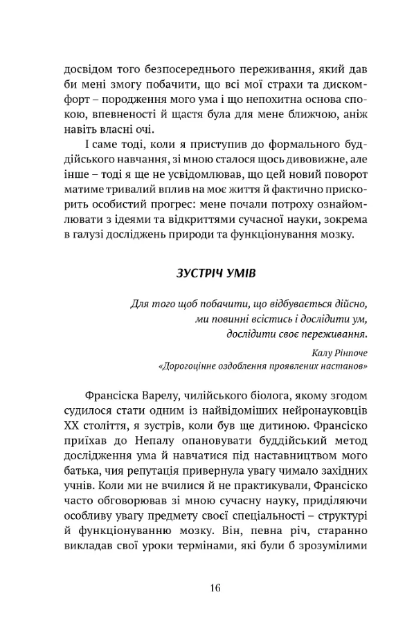 Автори цієї унікальної книги, котра поєднує буддійський і науковий погляди, зазирають у найпотаємніші глибини людської свідомості, щоб виявити ті первинні чинники, що закладають фундамент нашого існування як особи та принципи нашої соціальної взаємодії. Виявляється, прагнення сягнути щастя й уникнути страждання є не лише наміром будь-якої істоти, а шляхом її порозуміння зі світом.